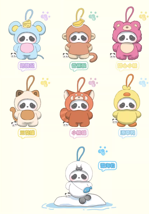 Panda Roll The Zoo In Hands Series Plush Keychain Blind Box