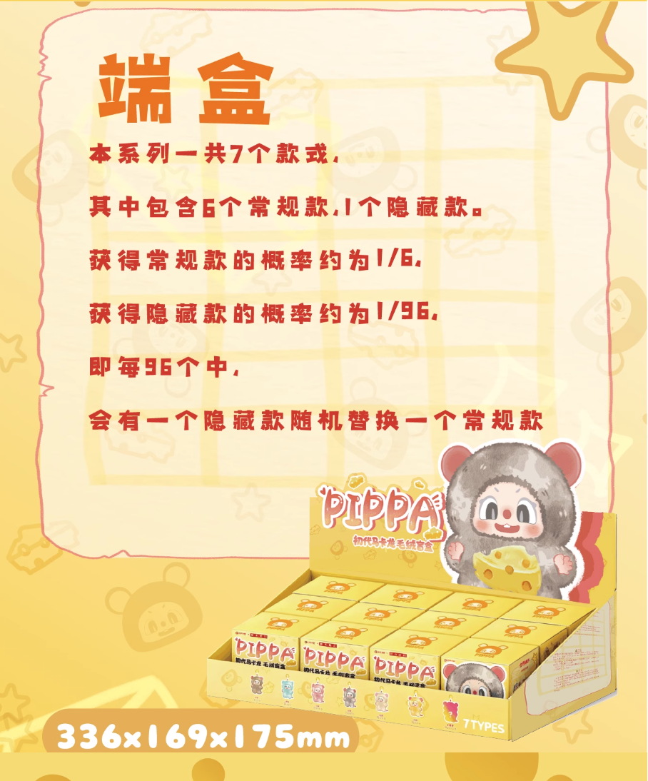 I'm Pippa! The sight of golden cheese and pink macarons makes my tail wag like a little whirlwind, and I can't help but skip around! Every day I smile until my eyes crinkle into crescent moons, and I'm radiating sweetness! If you're feeling a little down, that's okay too! Come here! I'll share a piece of your favorite cheese with you, guaranteed to chase away all your bad moods and make you as happy as I am! 6.1inch