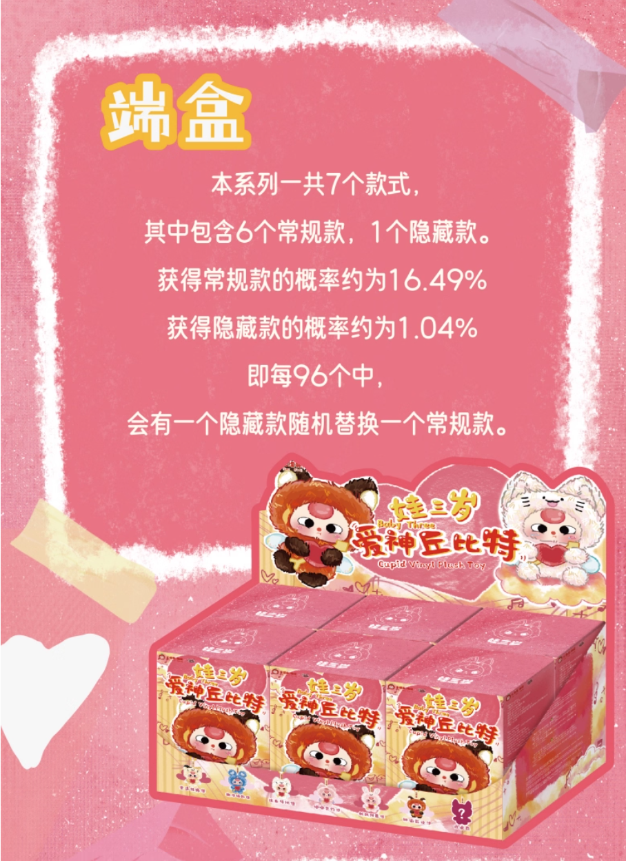 Cupid's classroom nurtures a group of young and enthusiastic apprentice Cupid sprites. They are apprentices chosen by Cupid from among countless small animals possessing pure love; each has soft fur, a pair of delicate little wings that flutter eagerly, and a heart that represents their innate talent. The sprites must descend to the human world to find people with whom they can form a warm emotional connection to participate in the final test. Only by gaining genuine companionship and affection can they pass the trial and become true Cupids. 4.8 inch