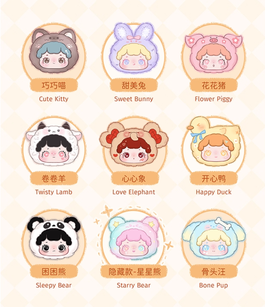 Soft to the touch and adorably cute, these plush toys, through their charming designs and fabrics, infuse modern life with warmth, companionship, and healing. Each character is not just a toy, but an "emotional partner" with whom you can confide and offer companionship. 2.55 inch
