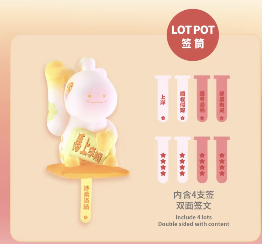 Includes 4 mystery fortune slips, each with a double-sided design—one side in Chinese and the other in English—offering a truly ceremonial experience. The hidden slip is practically divine! The electroplated surface gives it a quality that truly lives up to its auspicious connotations! Multiple ways to use it: ask for your fortune daily, use it as a game prop at gatherings, place it on your desk as a soothing decorative piece, or collect the entire series to summon good luck. 4.33 inch