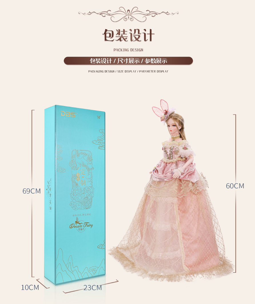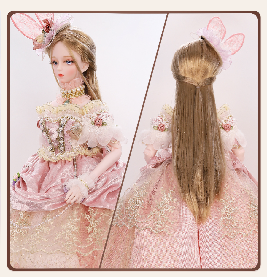 Standard features include a 34-joint, 360-degree articulated body. 3D eyes with realistic eyelashes, bright and lively gaze; exquisite handmade clothing, meticulously sewn by artisans; delicate hairstyles and headwear, with detachable and replaceable headwear. Comes with 1 outfit, 23.62 inch.