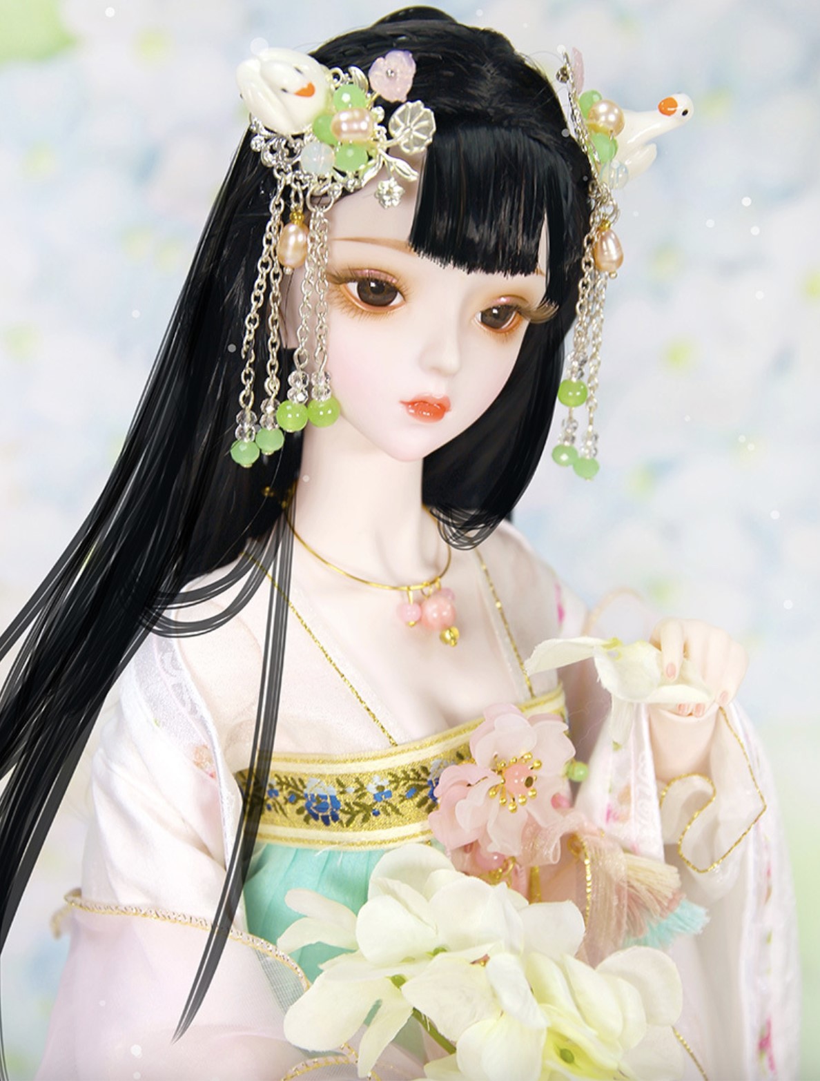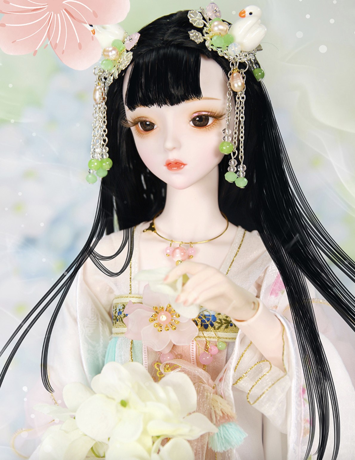Standard features include a 34-joint, 360-degree articulated body. 3D eyes with realistic eyelashes, bright and lively gaze; exquisite handmade clothing, meticulously sewn by artisans; delicate hairstyles and headwear, with detachable and replaceable headwear. Includes 1 outfit, 23.62 inch.