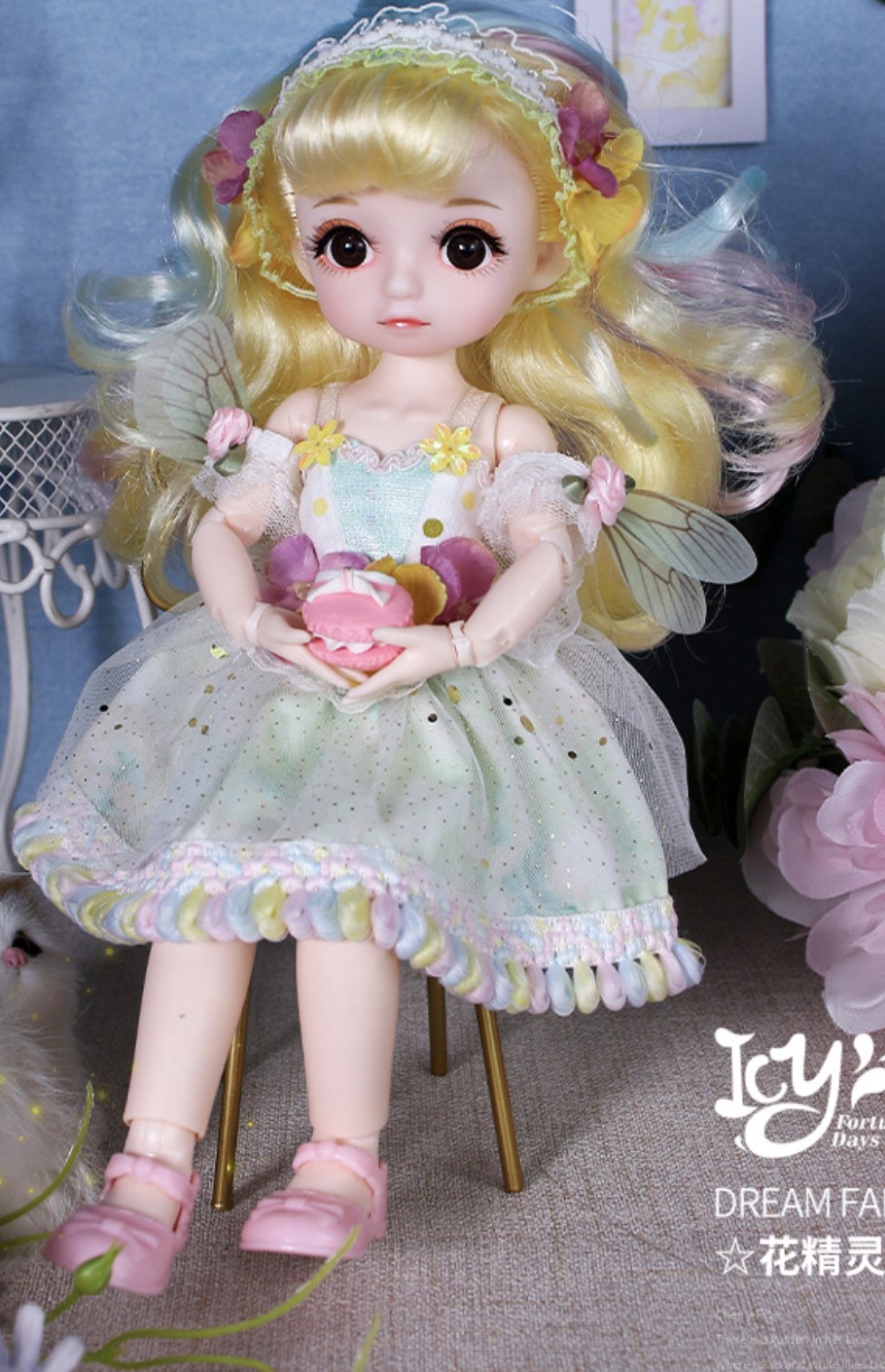 Exquisite packaging makes it suitable for gifting; 3D pupils and realistic eyelashes give eyes a bright and lively look; exquisite handmade clothing is meticulously sewn by artisans; thick and smooth hair is implanted all over the head for ample volume. Comes with a 28-joint, 360-degree articulated body. Comes with 1 outfit, 12 inches.