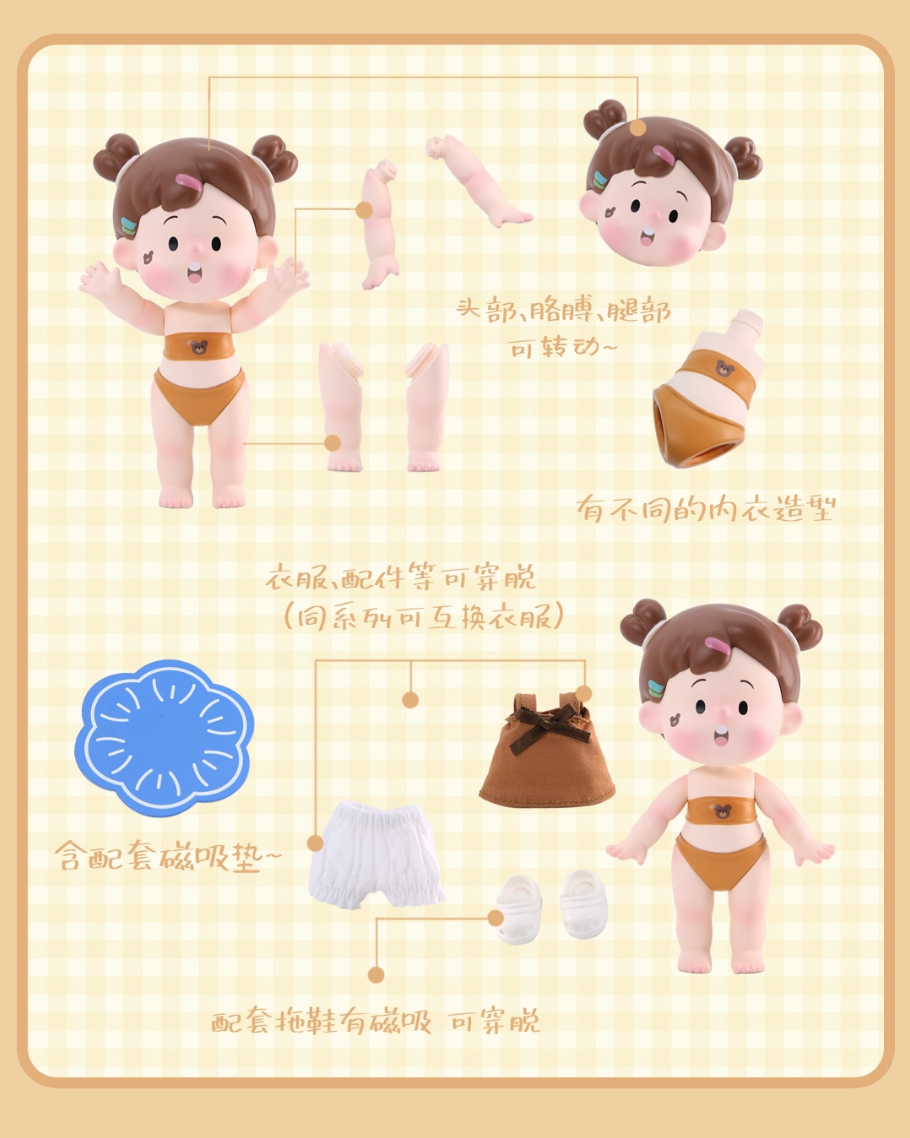 Many people don't know that the seemingly soft and adorable Xiaohuajuan is actually a very opinionated child. She loves experiencing different roles in life, and every OOTD (Outfit for Day) outfit, full of ritual, is carefully coordinated by her. Today, Xiaohuajuan wants to share the secrets of her wardrobe with you. Let's open the door to this surprise together! 3.66 inch