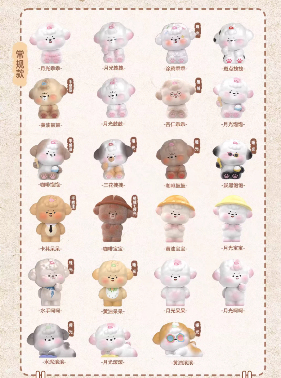What's in the forest? Blue skies, white clouds, green trees, sweet fruits glistening with morning dew, and a dog named Moji with a hair clip and a backpack on its back. Come see what funny things Moji has done today! 4 pcs per blind bag. 1.4 Inch