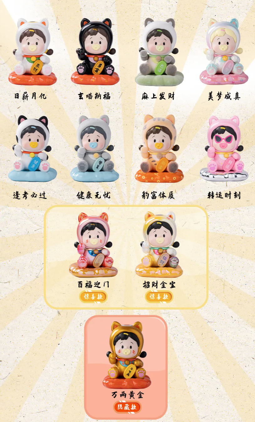 Adorable little Hanamaki transform into lucky cats, sealing good fortune into blind boxes. Each unboxing is a mystical lottery, bringing wealth, good luck, sweet dreams, health... 11 different lucky buffs await you, waiting for you to encounter surprises. No need to share lucky koi fish or burn incense for blessings, just open a lucky cat and put a whole year's worth of good luck in your pocket. 3.15 inch