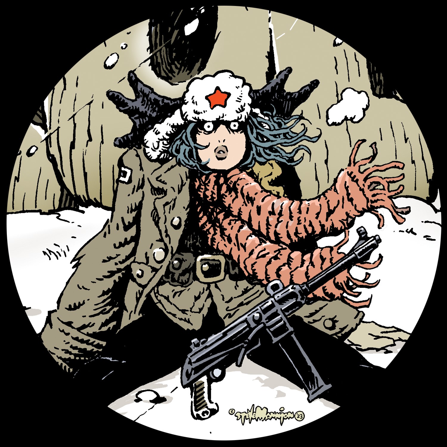 Fearless Dawn: Cold Gunner by Steve Mannion 5" Round Die Cut Vinyl Sticker