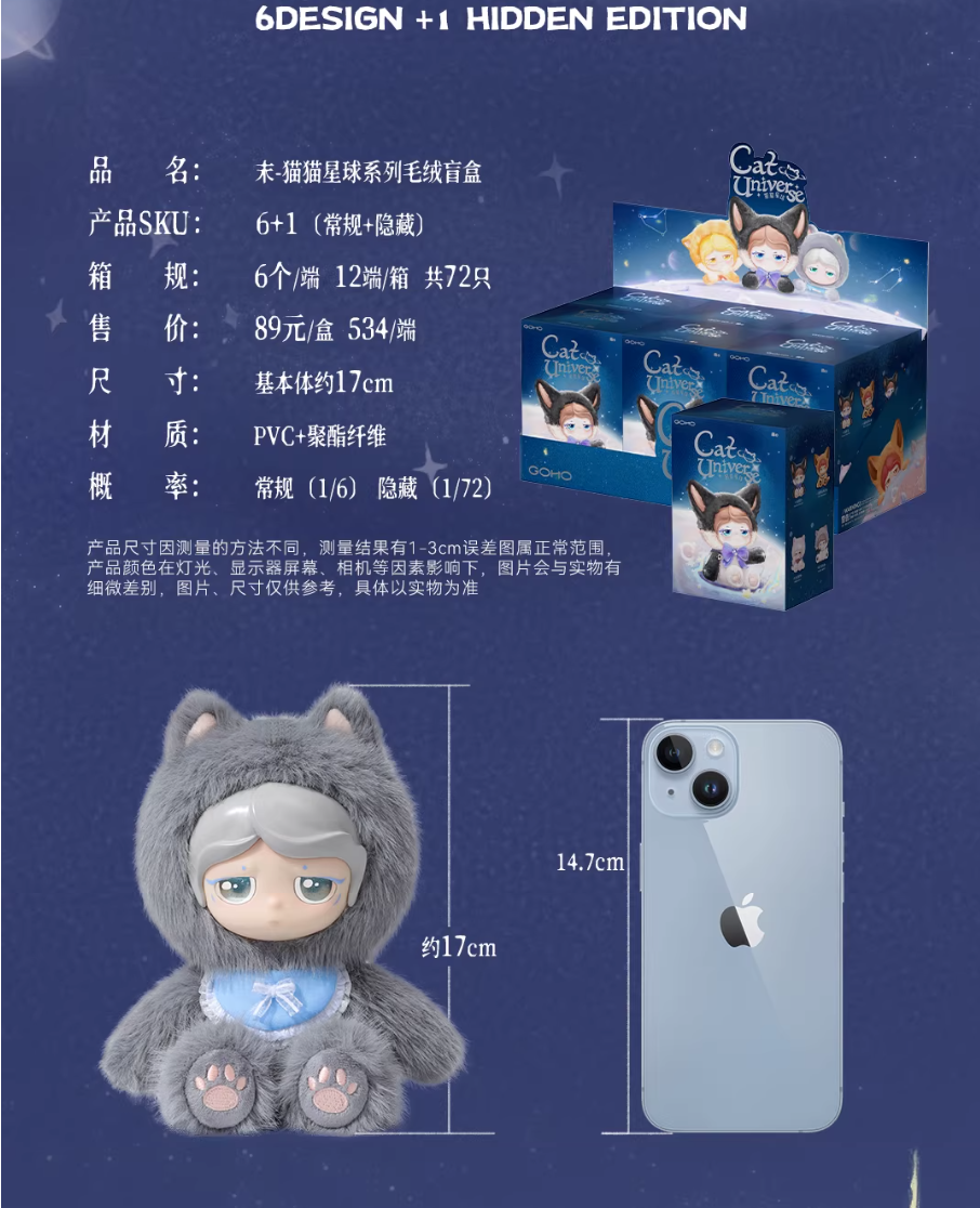 In the microcosm of the end, a cat's purr resonates with the soul. Wandering from one planet to another, there will always be a cat that reaches out its little paw to touch you, mending your lost emotions with its soft body. When your smile is reflected in the cat's pupils, please remember the promise you made to the cat planet: "I want to live in your heart forever." 6.3 inch