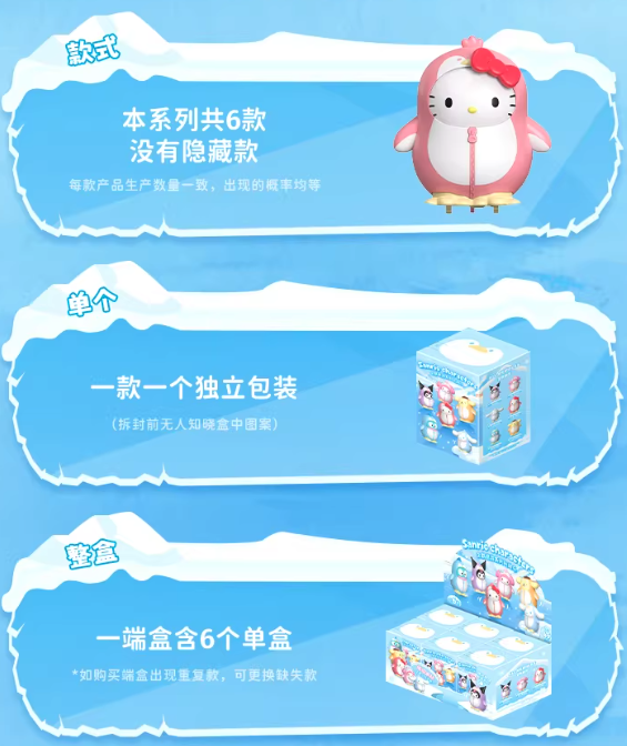Adorable creatures ahead! Sanrio's star stars have transformed into a penguin squad, embarking on a joyful parade with their goofy gait! 4.13 inch