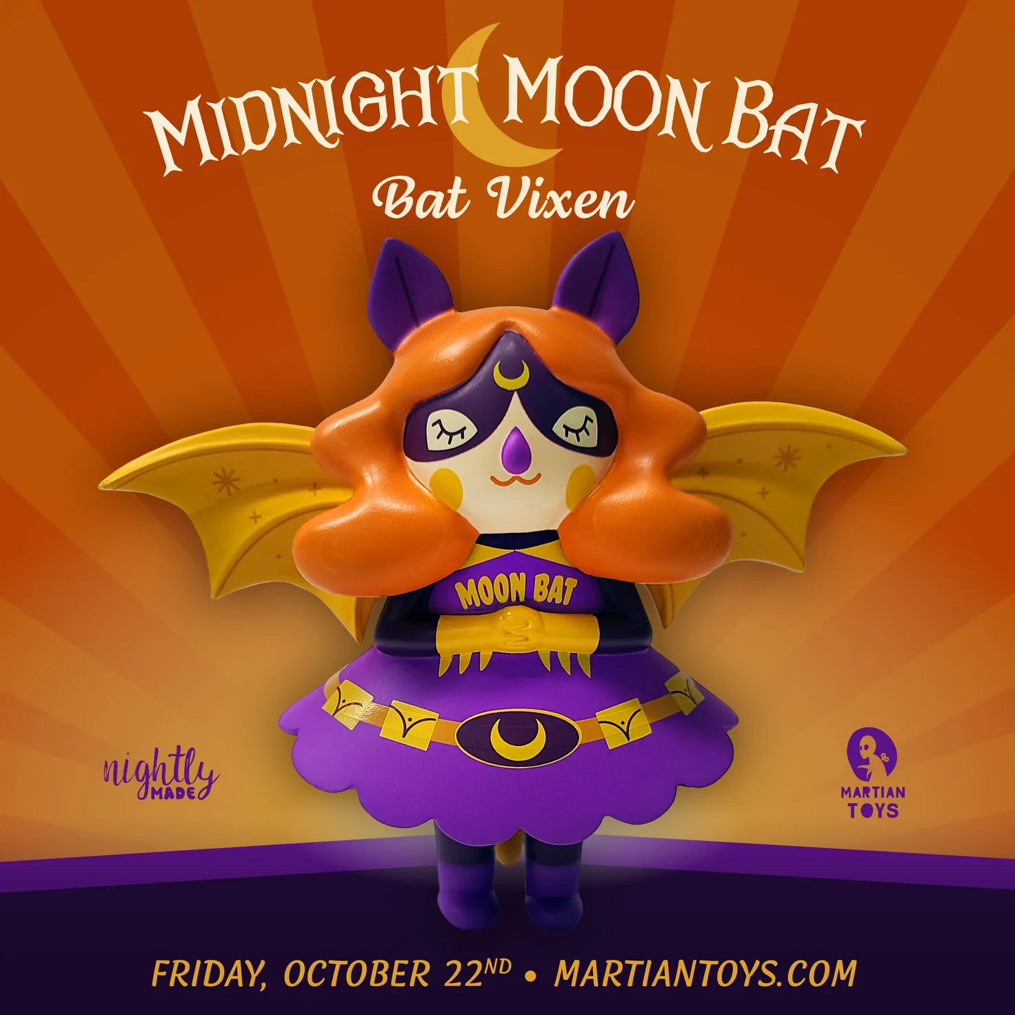 This debut Series 2 release of Nightly Made's vinyl figure pulls inspiration from our 1960's crime fighting fierce Girl Bat! Introducing the Bat Vixen: Is she the hero we need or just a bat dressed up for Halloween? You decide!