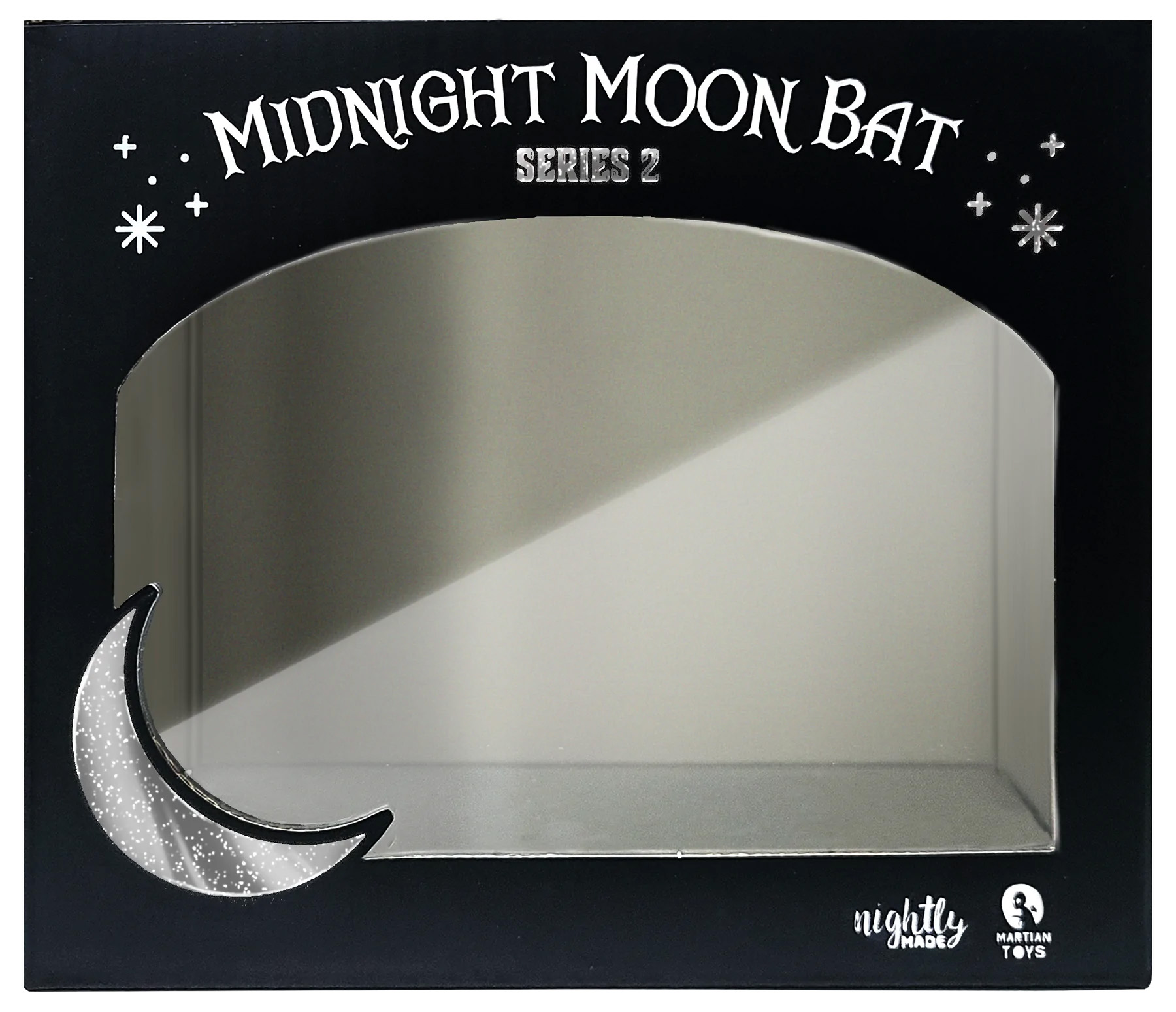 This original character designed by Megan O'Brien / @NightlyMade has had a life in plush for years but she's just so cute we thought she needed to exist in vinyl! Standing peacefully at 4.5" tall displaying her lovely ~5" wingspan, this night time nibbler loves to share space with you anywhere you would like to take her along. Be it on your shelf, desk, or hanging from a tree or chandelier! With her hooked tail she's grounded or secure everywhere and shares those confident vibes with her best friends