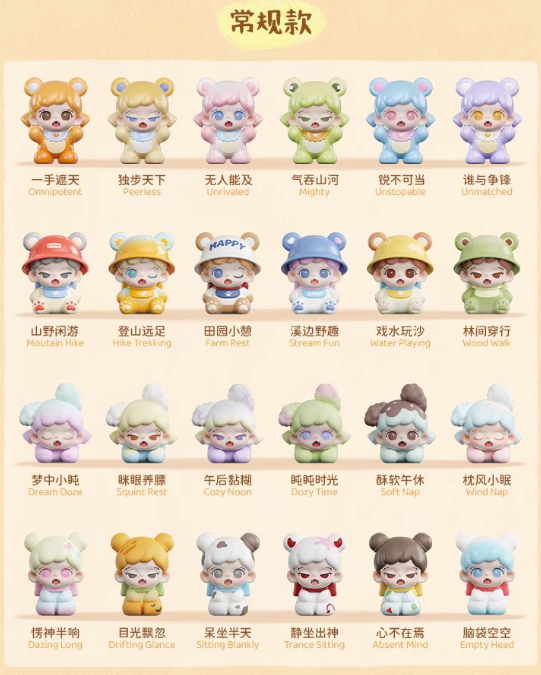 In this little kindergarten, happiness is swallowing a freshly made cotton candy in one bite, or secretly drawing a mustache on the sun. All the cute or mischievous moments are quietly sprouting and growing into the fluffy everyday life. 5pcs per bag, 1.4 in