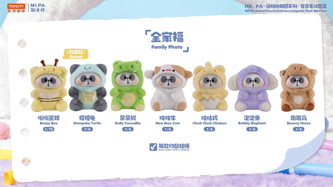 Meet the quirky team behind MR. PA Animal Co.—a lineup of plush characters that exude personality and charm. Each blind box reveals one mystery character, perfect for collecting, gifting, or adding a touch of whimsy to your day. From a “Slowpoke Turtle” to “Bubbly Elephant,” these plushies come to life with expressive details and soft textures. 4.72 inch