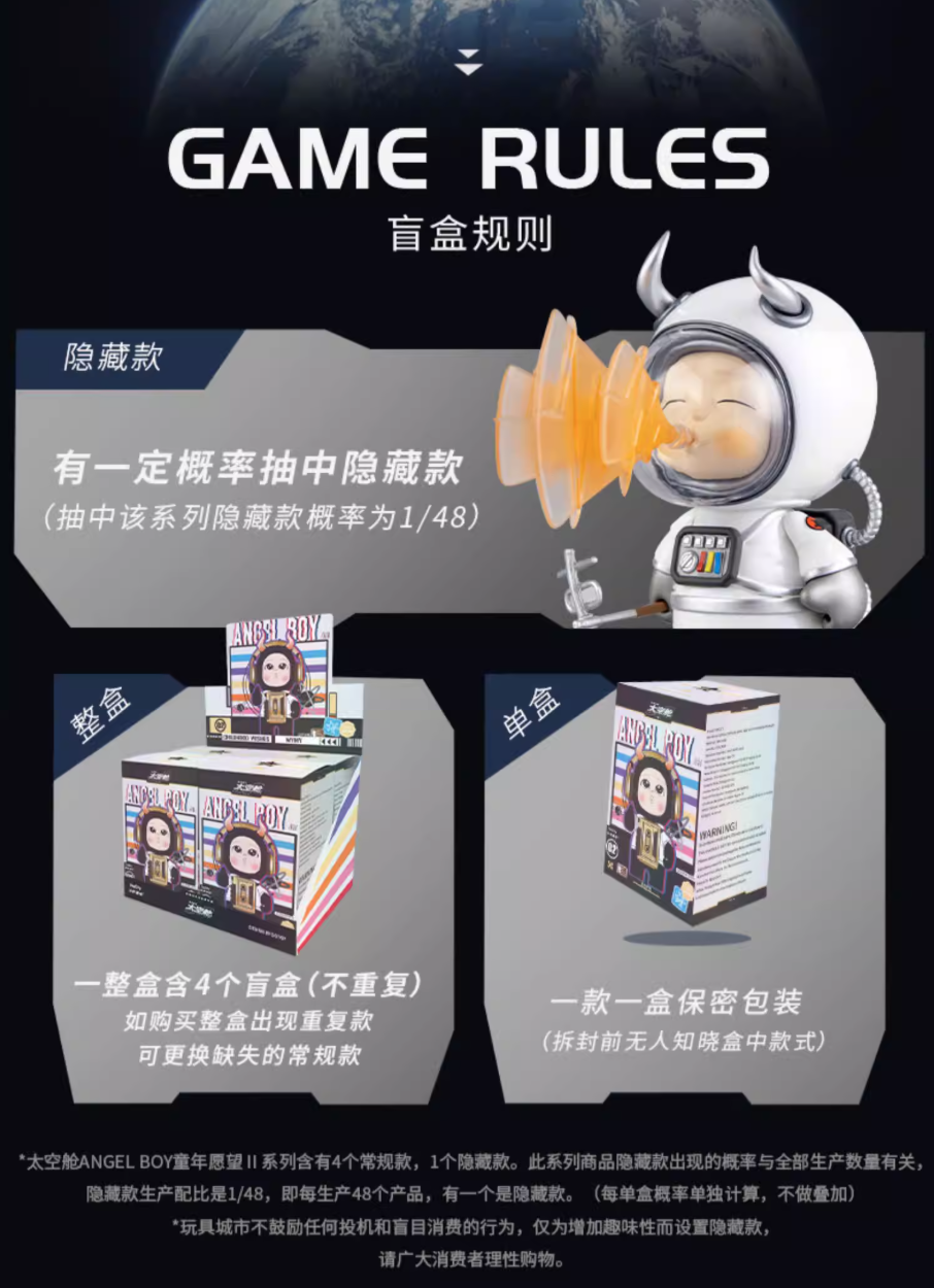 ANGEL BOY pressed the button on his Walkman, and a familiar melody began to play. This was a journey back to childhood, a trip to fulfill those unfulfilled childhood wishes. ANGEL BOY boarded a spaceship and headed to his destination. 4.72 inch