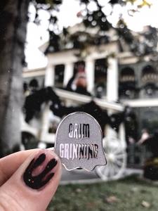 Haunted by past traumas, this poor ghost is constantly reminded of his passing by the included ¼” gold dot pin. The eyes look to the left on this variant. Multi-color hard enamel with metal clasps, carded and bagged. About ¾” x 1¼” |