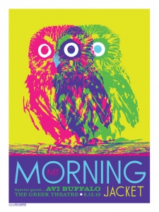 Broken Bells Winspear Centre 2014 print | Prints/Posters-Paper | Kii Arens | "This print is a simple beauty. I photographed a great friend of mine on my deck over look San Fernando Valley one morning to create this dreamy design. My ever present giant apple is always excellent fodder for my design work. The day-glo ink... more |