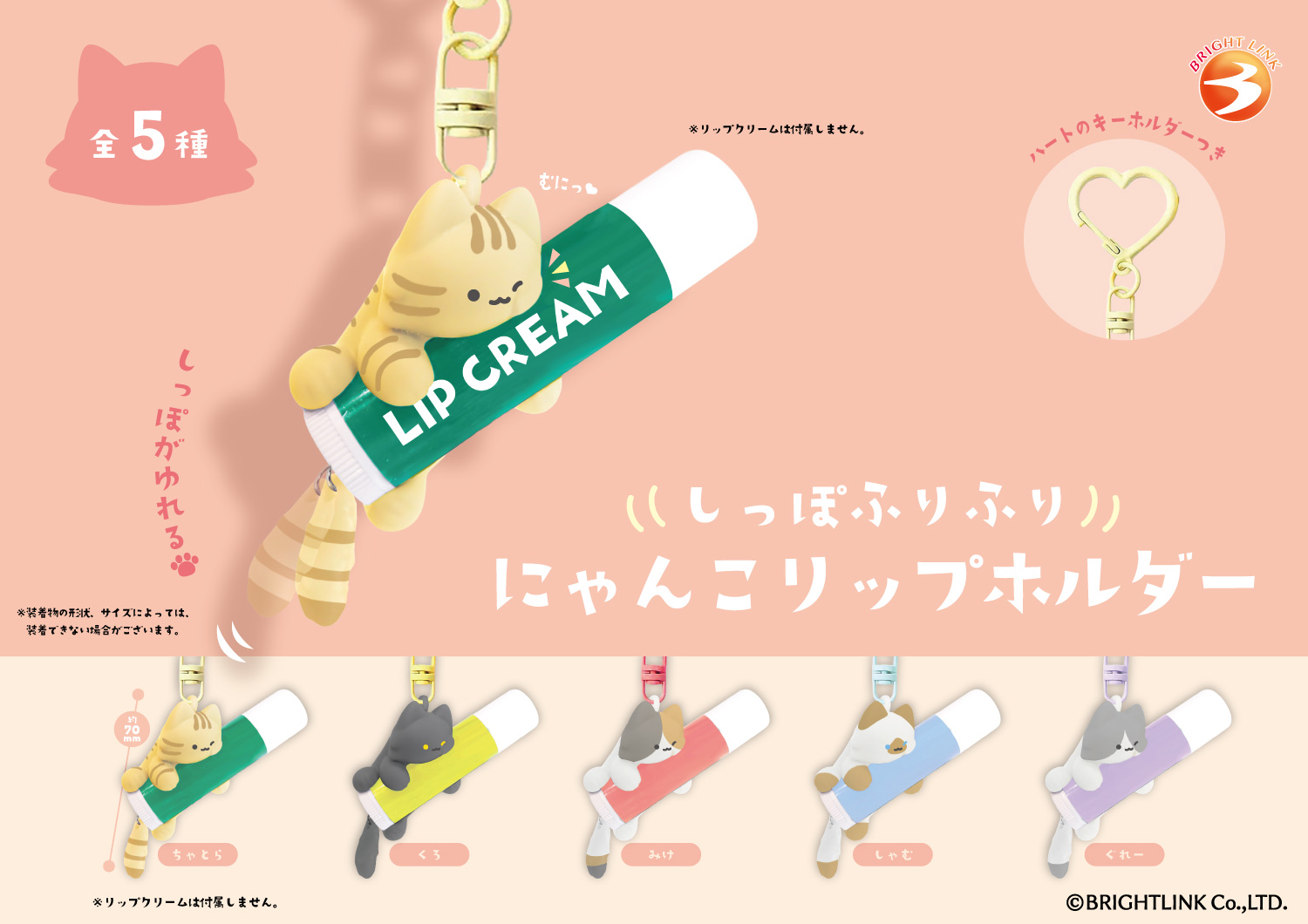 Trending lip holder category Cute cat design with a swinging tail Convenient for carrying lip products Individual Box Size: W55*H75*D40mm