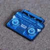 The Blue BMBOX pin is a Gold Plated Soft Enamel pin sized 1.50" x 1.25" (38 x 31 mm) and comes with a Black Rubber backer, designed by Elena Kazi & produced by Creamlab.
