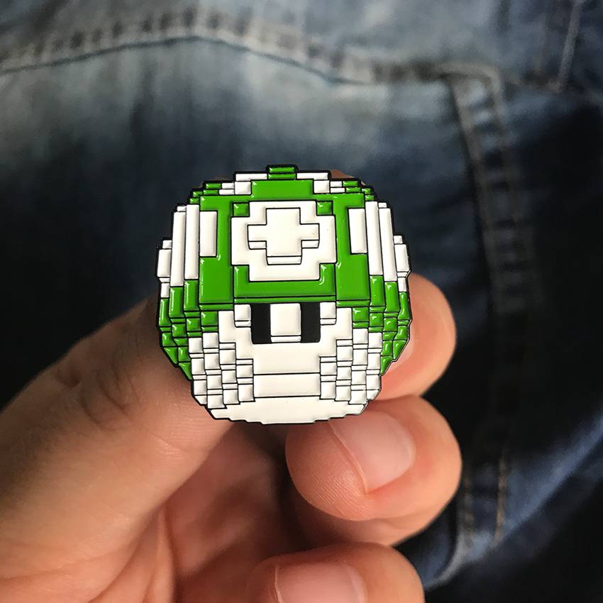 The Mushroom Enamel Pin is sized 1.25” x 1.25” (31 x 31 mm) and comes with a Black Rubber backer, designed by Vuitbits & produced by Creamlab.