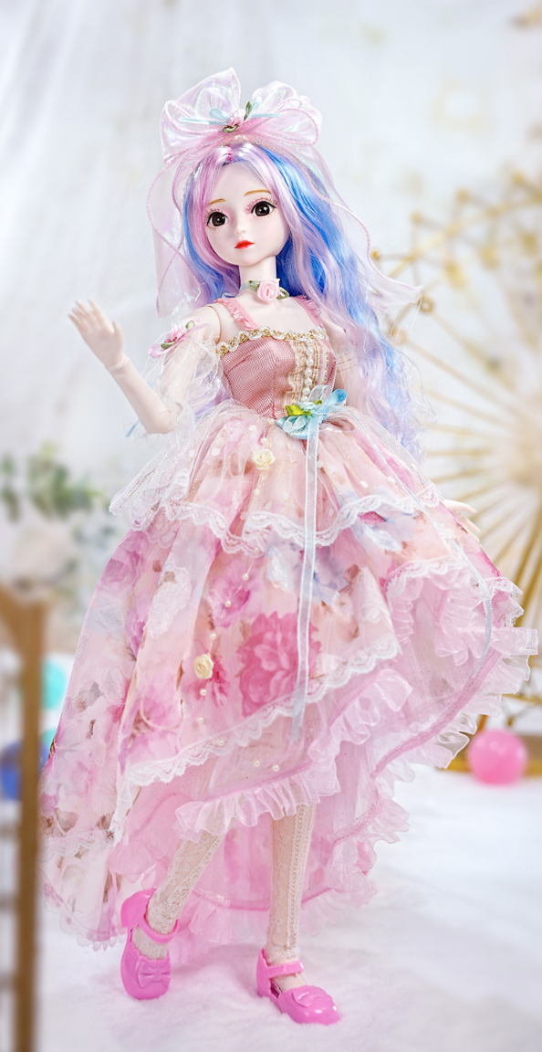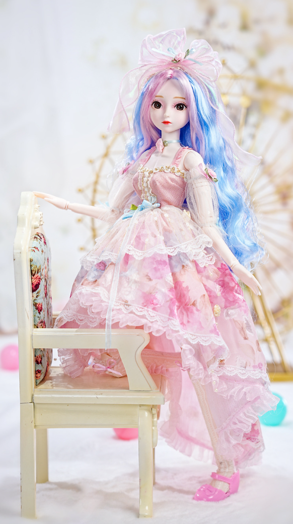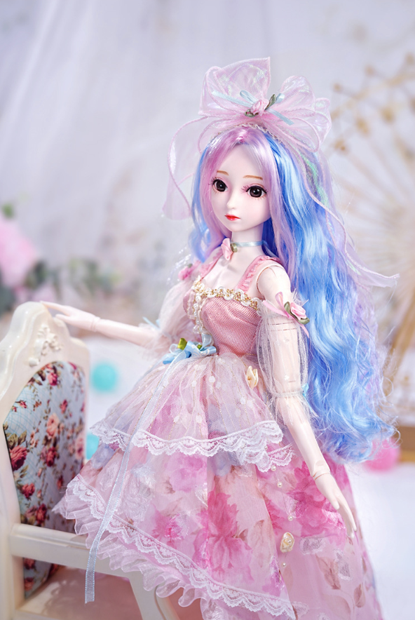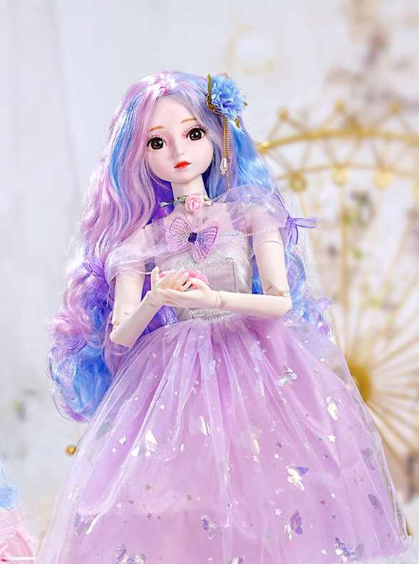 The doll's exquisite facial makeup is hand-painted, and its beautiful headdress is breathtaking. The dress features intricate details, is handcrafted, and boasts exquisite carvings, exuding elegance and nobility. Comes with 2 outifts.
