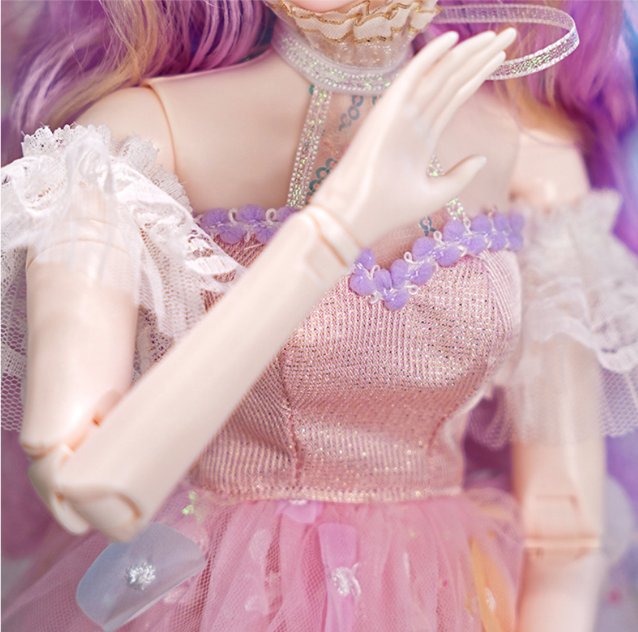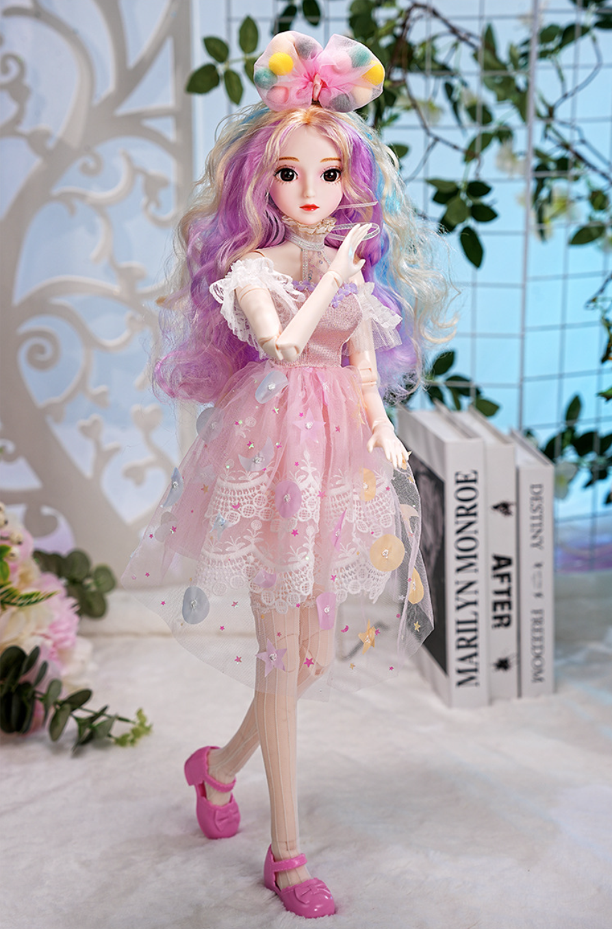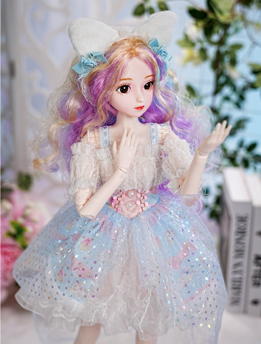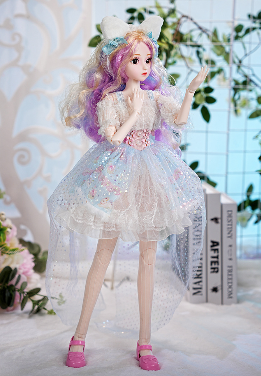 3D eyes and eyelashes, sparkling and lively; exquisite clothing; DIY fun; realistic, thick hair; full and voluminous hair; clothing and accessories to match and freely change. Standard configuration includes a 34-joint, 360-degree articulated body. Comes with 2 outfits, 23.62 inch.