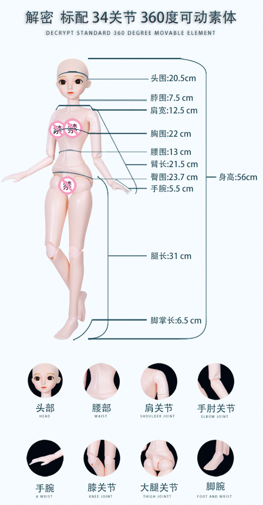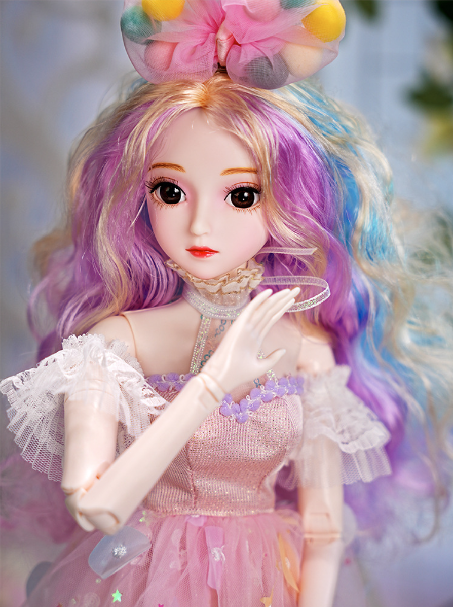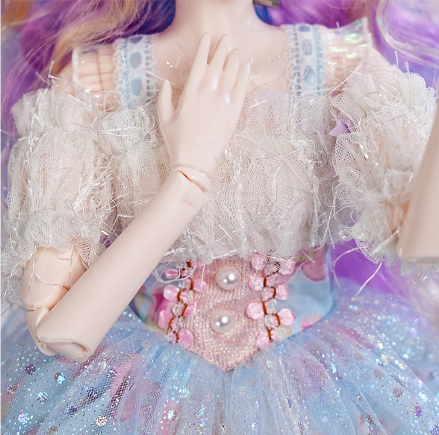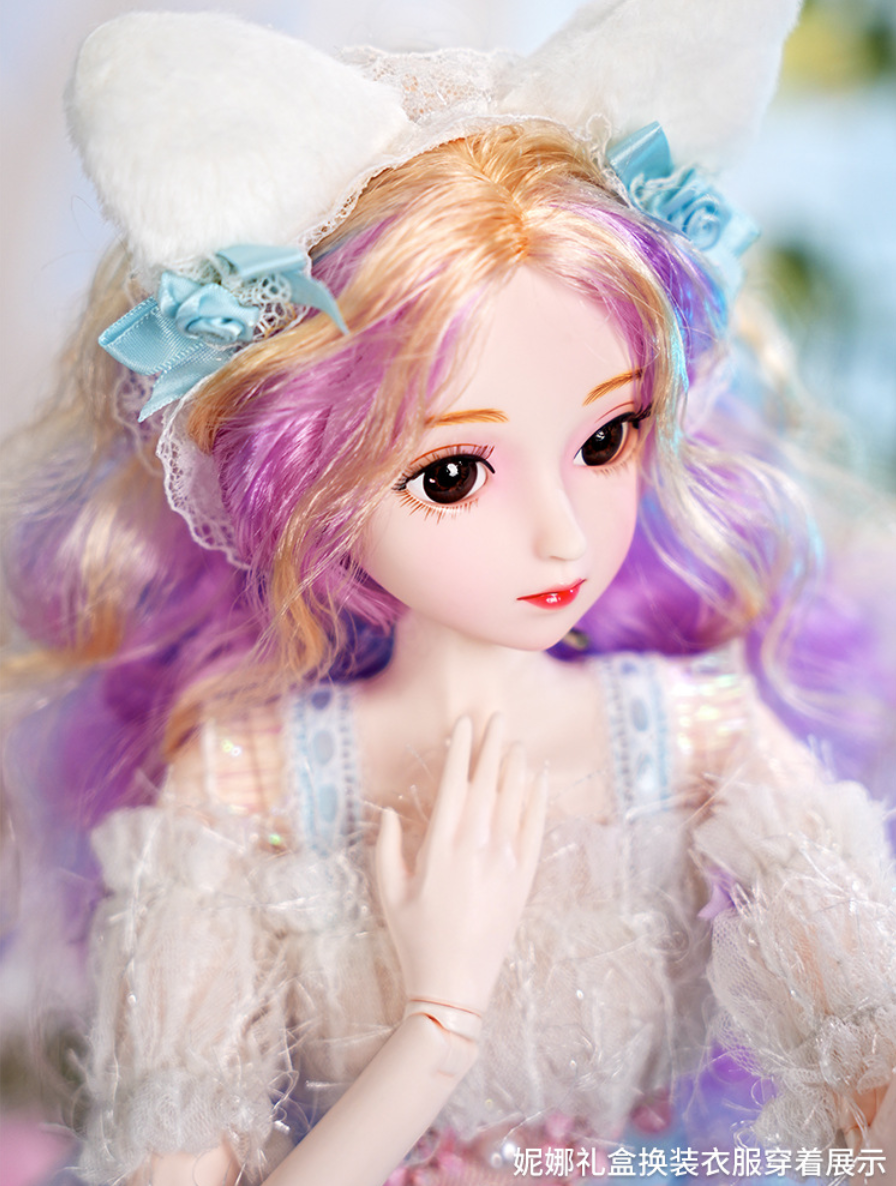 3D eyes and eyelashes, sparkling and lively; exquisite clothing; DIY fun; realistic, thick hair; full and voluminous hair; clothing and accessories to match and freely change. Standard configuration includes a 34-joint, 360-degree articulated body. Comes with 2 outfits, 23.62 inch.