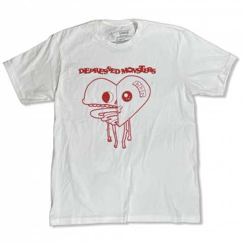 Want to show your love of Depressed Monsters with your bandaged heart? Well, oh boy, do we have a shirt for you! Features: 100% Cotton White shirt with red screenprint Features Skele-Heart