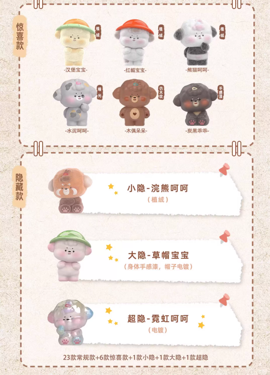 What's in the forest? Blue skies, white clouds, green trees, sweet fruits glistening with morning dew, and a dog named Moji with a hair clip and a backpack on its back. Come see what funny things Moji has done today! 4 pcs per blind bag. 1.4 Inch