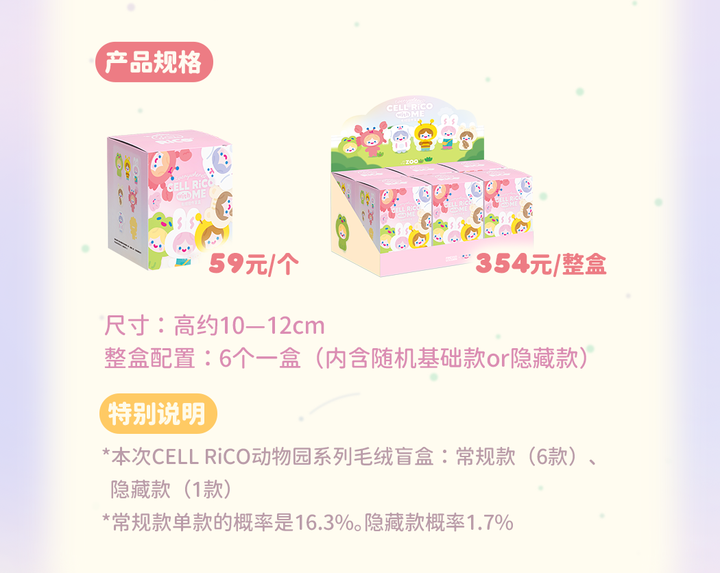 Colorful brushes, plush tumbling. In a little time, Cell RiCO and you form the whole warm animal home. Cell RiCO gives you a children's experience card to capture beauty and love. 3.9-4.7"