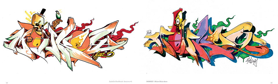 After a decade long hiatus, Publikat is bringing back the much-loved Blackbook Sessions series due to continued demand from the underground. Over the course of 160 pages Blackbook Sessions V.5 offers an insider’s view of the individual approaches taken by contemporary graffiti writers. Some work out perfect pieces on paper, others just scribble around, allowing their ideas to surface through more gestural work. These volumes are published in Germany and focus mostly on the European Graffiti scene, but writers from around the world enjoy being profiled within.