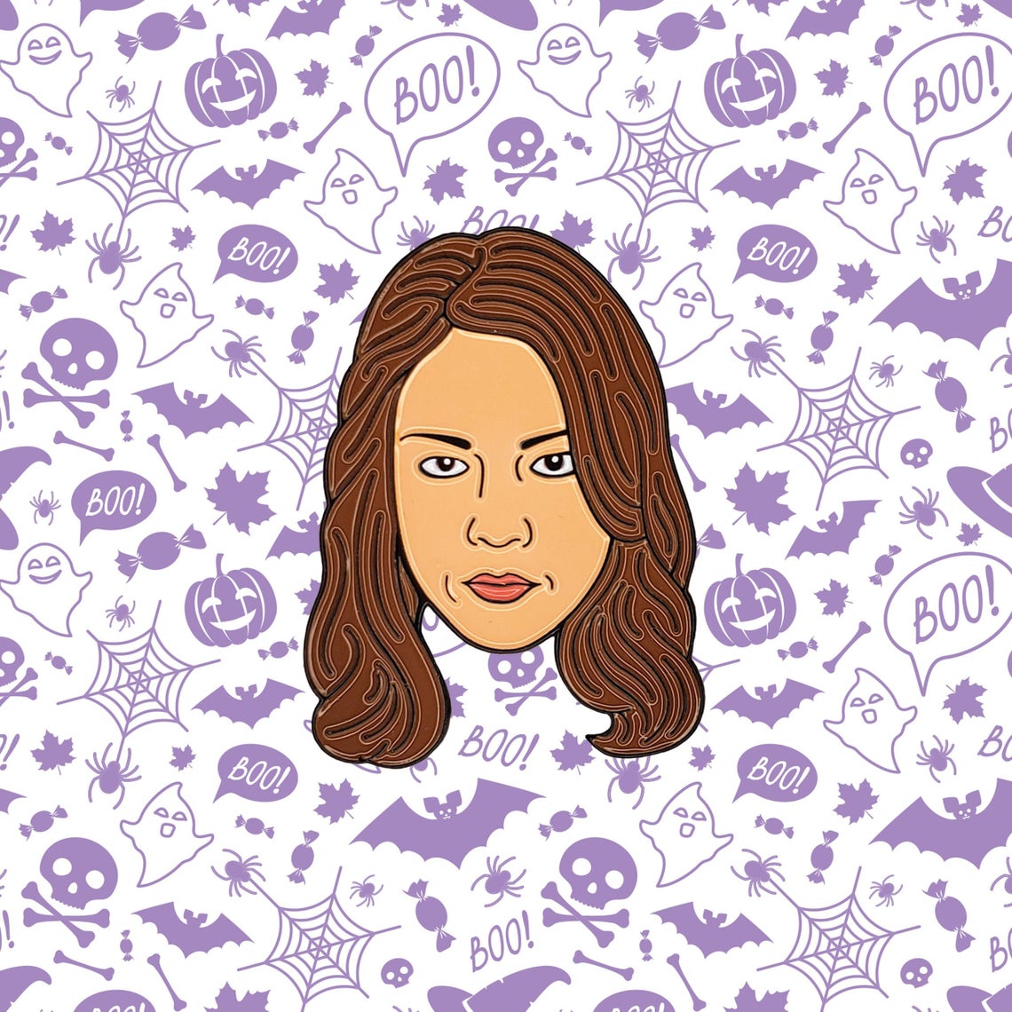 This 1.75″ soft enamel April Ludgate pin is secured with a rubber clutch to keep it safe whether you’re partying it up as Janet Snakehole or drinking the most expensive red wine mixed with the cheapest white wine out of a dog bowl.