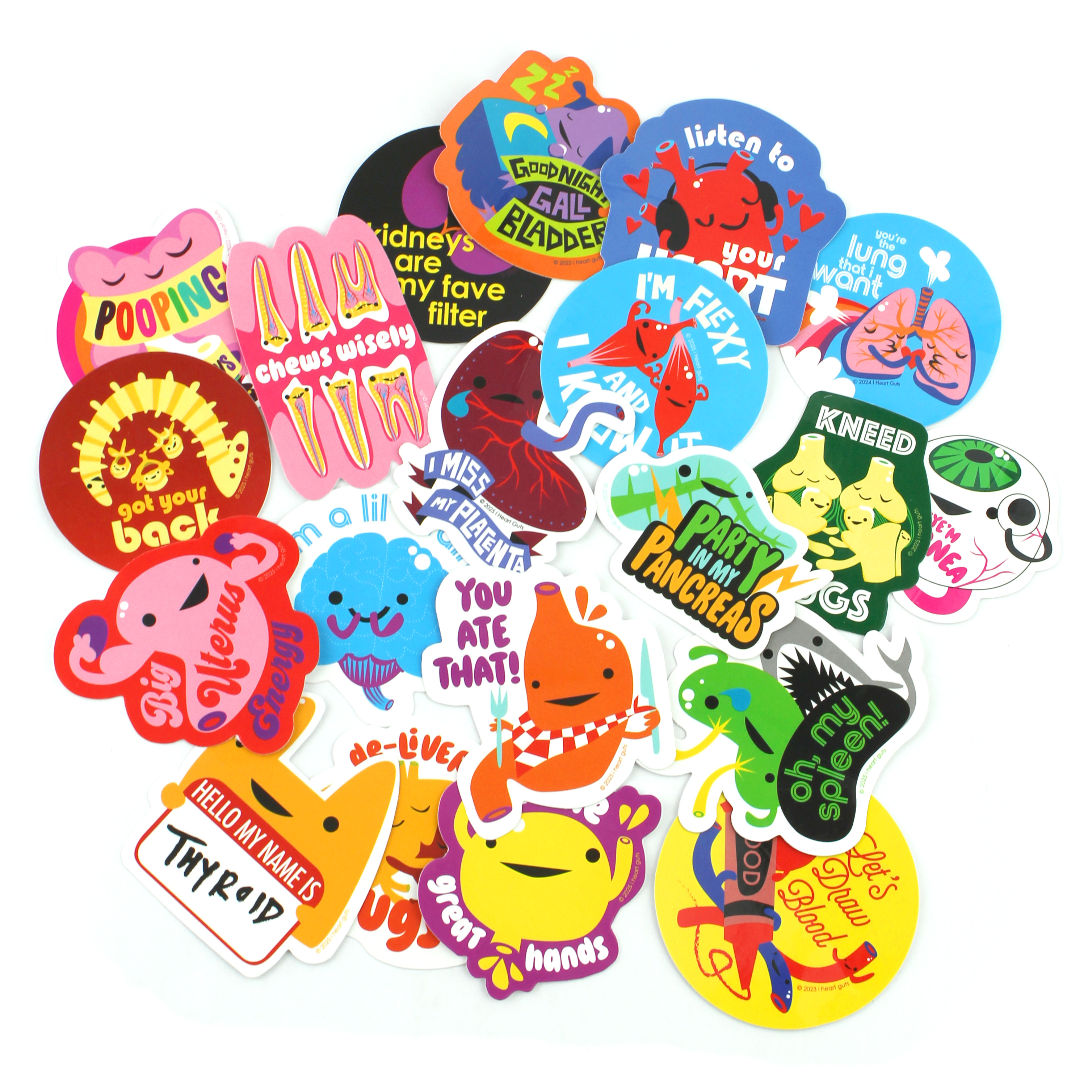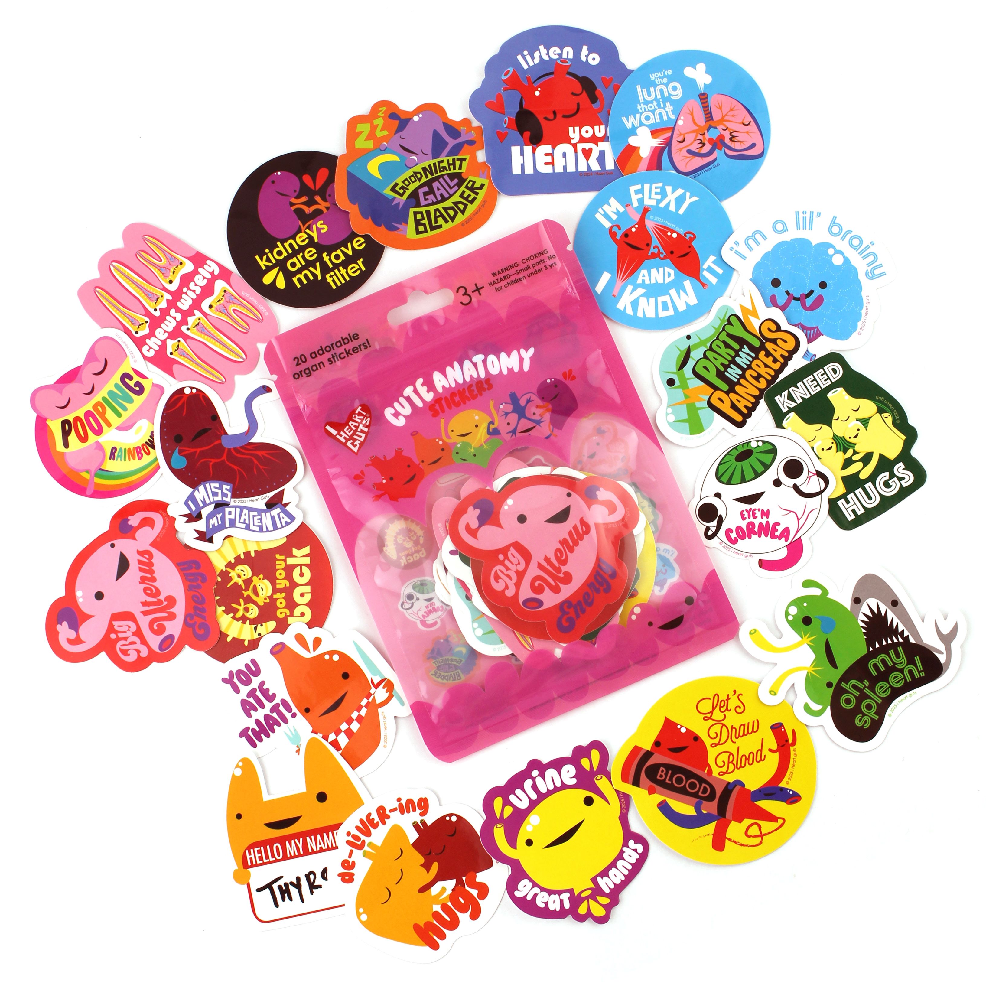 Cute Anatomy Stickers - Set of 20 Human Organ Vinyl 2.25” Variety Sticker Set