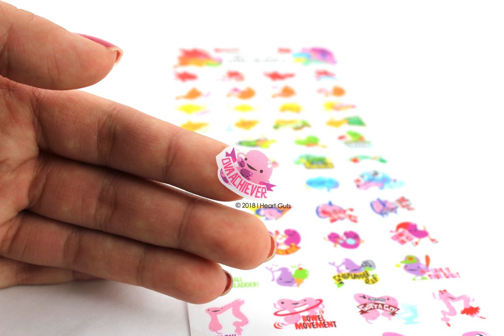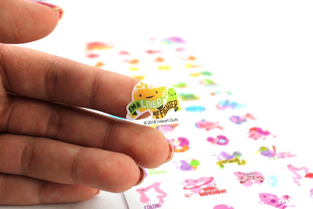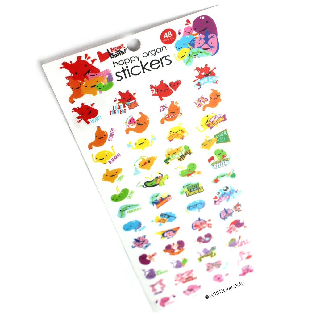 Sticker sheet features 48 stickers of 12 major organs for one low price! Decorate your notebook, phone or walls with adorable organs. See your spleen bathing, lungs flying, brain reading, colon hula-hooping, gallbladder playing ball and lots of other eye-popping sights. Each sticker approx. 1/2" each. Long-lasting PVC material will stick through tough times with you. Put a gut on it! Made in China. 2 sheets per pack, 10pks per case!