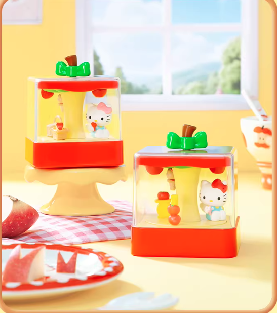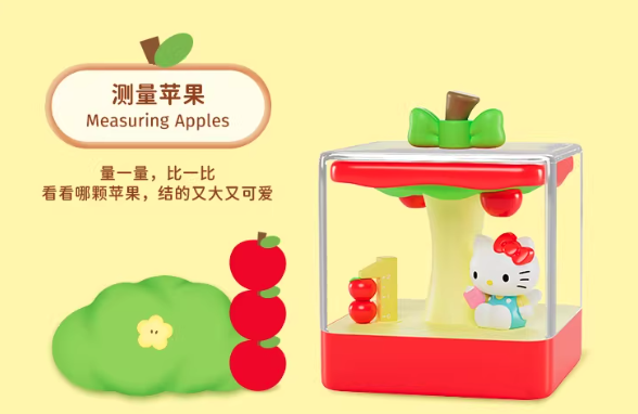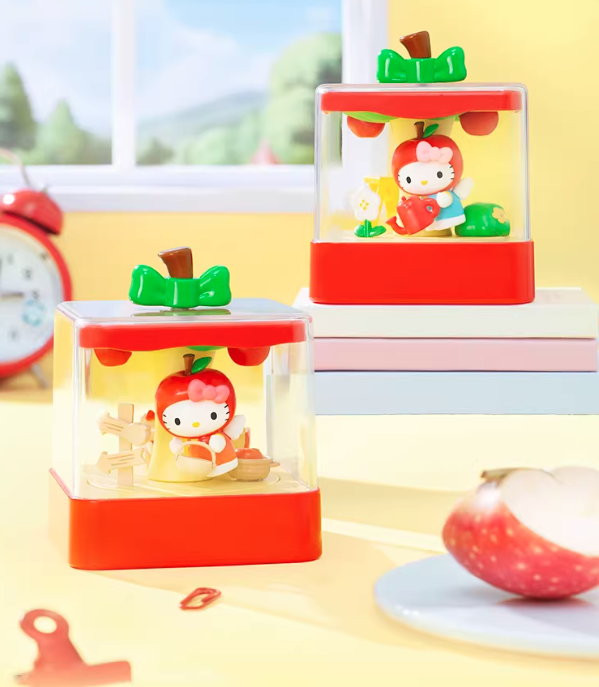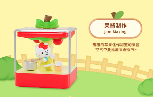Welcome to Apple Town! Sunshine and a gentle breeze mingle with the sweet scent of fruit. Enjoy a time in this charming town with Hello Kitty! 3.93 inch