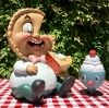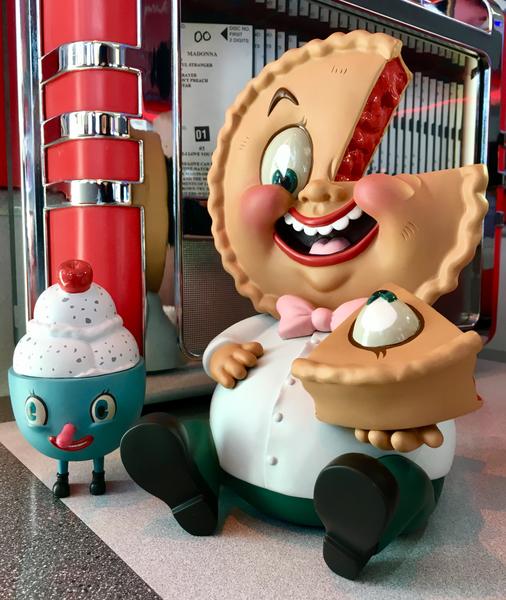 Based on the Nouar’s original 2012 painting by the same name this designer toy stands (well sits) 9 Inches tall. Mister Self Indulgence comes accompanied by his little buddy - “Lil’ Scoopy” - an ice cream sundae character. He is 4 Inches in height - a great stand alone piece all to himself. You get the pair in one beautiful window box display.