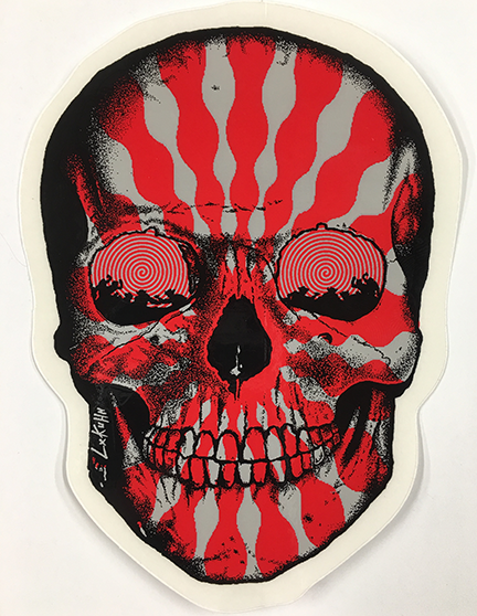 High Quality "Psychedelic Skull" Sticker,on permanent clear die cut vinyl. 5" tall, Crack and peel backing! Art by LxKuhn