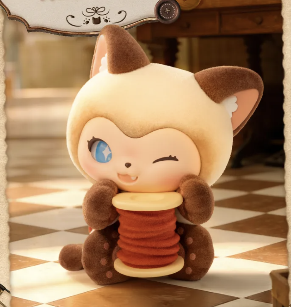 The "MOFFY'S Magic Tailor Shop" on the street corner always glows with a warm golden light. Inside lives the magical kitten MEWKY and its best friend MEOWTY, where heartwarming antics unfold every day. This is MEWKY's first blind box set, "MOFFY'S Magic Tailor Shop," documenting their heartwarming daily life at the magical tailor shop. 3.42 inch