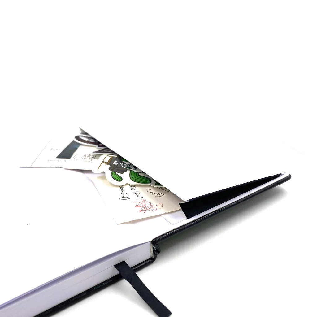 Ribbon bookmark and elastic band closure