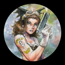 Fearless Dawn: Dawn with Smokin' Gun by Steve Mannion 5" Round Die Cut Vinyl Sticker | Sticker-Vinyl | Steve Mannion,Frank Forte |