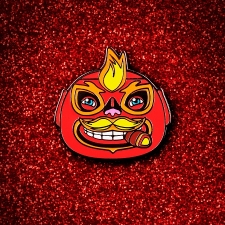 1.5" Señor Fuego Head Pin | Pins-Other | Carlo Flores | Limited edition 1.5″ Señor Fuego enamel lapel pin head in signature Fuego hues. You can’t beat that smiling Fuego with his trademark cigar, ready for his next fight with a grin bound to brighten any day! Wear it on clothes, outerwear, or your gym... more |