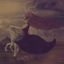 Carrousel of Magic Print | Prints/Posters-Paper | Rocio Mirelis | "Carrousel of Magic" depicts a dark, mythical queen that pursues her dreams and wishes by riding a carrousel horse that had been enchanted in ages past. Her love for magic surpasses anything and anyone and she will keep using it to achieve... more |